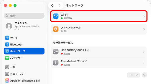 [ネットワーク]画面が表示されます。ご利用の接続を選択します。
